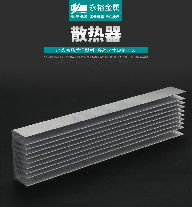 6063鋁型散熱器可進(jìn)行各種表面處理,花色品種多,而且無焊點(diǎn),裝飾性強(qiáng),美觀耐用,能滿足人們個性化要求,永裕金屬還可以加工噴砂、拉紋、拋光、表面陽極氧化,硬質(zhì)氧化等等加工工藝,制造出更美觀的鋁型材散熱器。